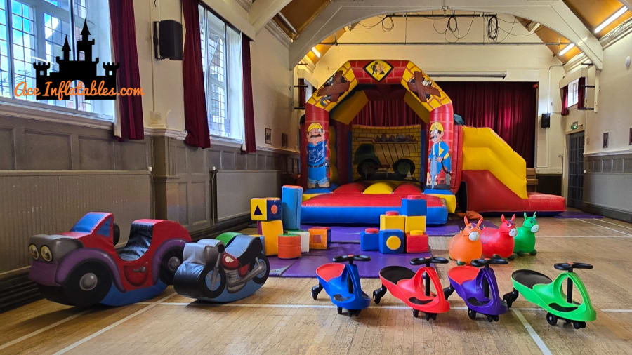 Our Construction Soft Play is always a favourite at birthdays, community events and family gatherings. It’s designed to fit most halls, village venues and larger gardens, providing both active fun and creative play.