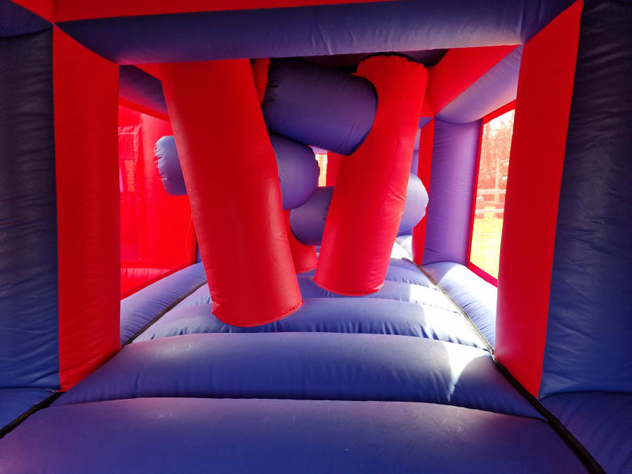 Starting by entering through a hole in the wall you are met with Bish & Bash, which are inflatable pillars you have to fight through, then followed by the U bend where you have two options, one to go straight through and climbing over the slide, option two is going through the U bend with more difficult Bish & Bash, then making another turn and battling your way through more obstacles once again before the climb to the top of the slide where you are faced with the final descent.