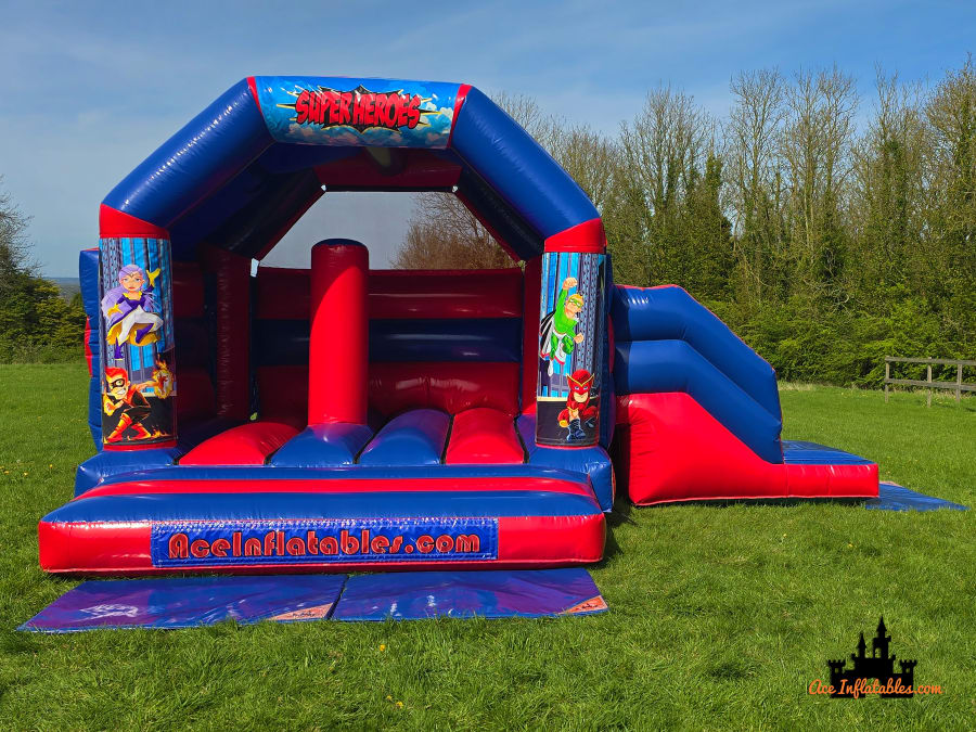 Book our Superheroes Themed Red and Blue Bounce and Slide for an action-packed party experience today!