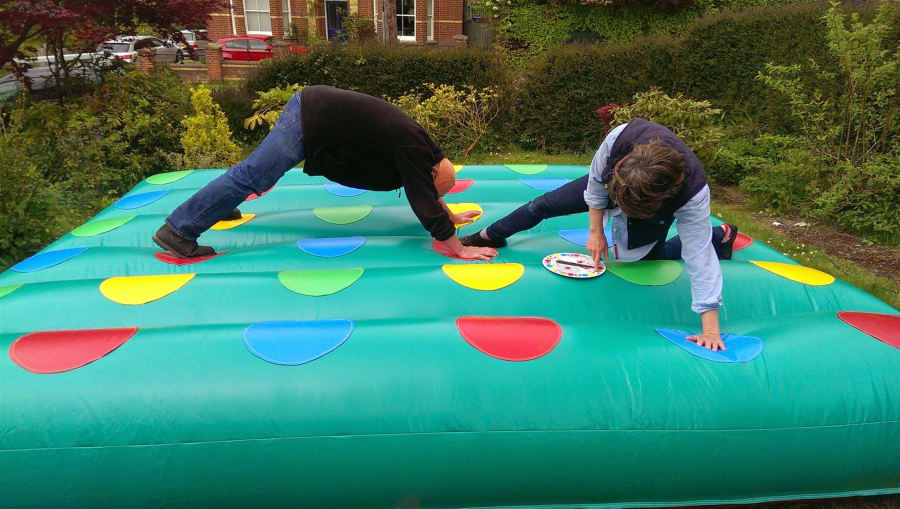Players fall about laughing on the twister, but this one is lots of fun having the luxury of falling onto the inflatable bed, a fun spectator sport with the giggle factor, that's our twist on it, but we have seen it get competitive as well.
