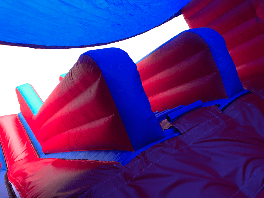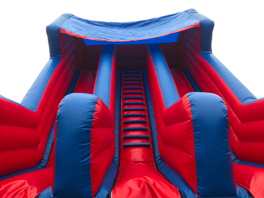 The Twin Lane Inflatable Slide comes with two lanes for riders to go down.
